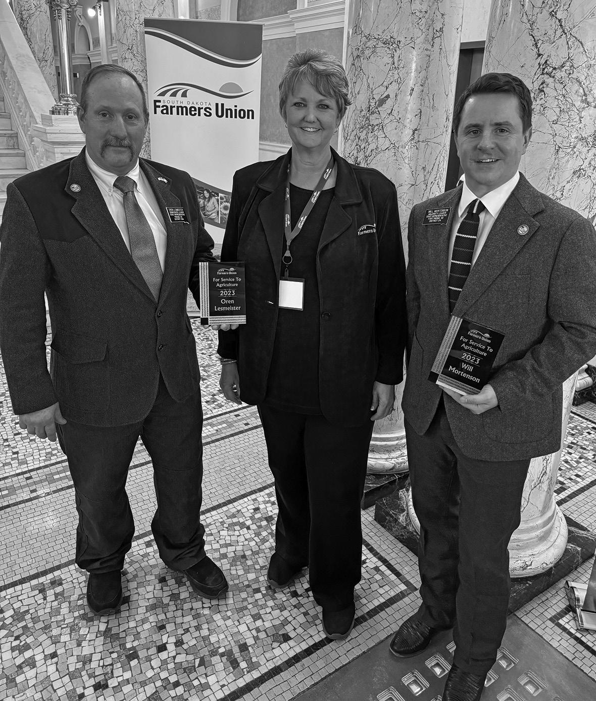 During NFU Convention, Jeff Kippley was re-elected to serve as NFU Vice President (read about this on page 14) ; SDFU President Doug Sombke was re-elected to serve as NFU Treasurer (read about this on page 13); David Reis, Reliance rancher and District 4 Board Member, received the Bruce Miller Membership Award (read about this on page 12); Bill Zortman, Milt Hakel Excellence in Agricultural Journalism Award (read about this on page 7); and a district and several counties received national recognition for membership growth: Lyman County, Brenda Reis; Jerauld County, Scott Kolousek; Hand County, Rocky Forman; NFU President, Rob Larew; District 1, Larry Birgen; Dewey/Ziebach Counties, Oren Lesmeister; Brule County, Cadence Konechne; and Lincoln County, Kirk Schaunaman (on behalf of Lincoln County.)