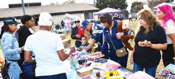 The all-things-free event featured toys, take-home bags of groceries, vendor booths, arts and crafts, hotdogs, Starbucks drinks, and an appearance by Santa Claus and the Grinch. Add a stage for live entertainment, 100-dollar gift cards for invitees, and other