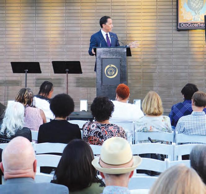Timothy J. Shields, the Managing Director of the Old Globe (left), Ms. Rosemary Pope (middle) and Barry Edelstein, the Artistic Director of the Old Globe (right). PHOTO: Olivia Clark