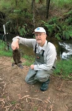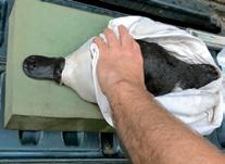 San Diego Zoo Global is proud to support a cuttingedge conservation effort in southeastern Australia that benefits six endemic species. Freshwater ecosystems are under siege from urbanization, climate change, invasive species, and habitat loss. To prioritize management to prevent species extinction, a collaborative team is using a new technology called environmental DNA (eDNA), to map the distribution of and threats to five fish species and the platypus. The project will span three years, with eDNA surveys and threat identification completed in the first two years, and conservation management solutions implemented the final year. The goal is to secure populations in at least three natural catchment areas. All living things shed DNA (through skin, hair, scales, feces, eggs, mucus, etc.), so water samples will be collected and filtered through a unit that strains out cells, analyzes them through amplification and DNA sequencing, and compares the material to a DNA library. This is a way to document which species—native or not—are present. “This is a great opportunity to use an iconic species like the platypus to help make an impact for lesser-known and critically threatened native species, like imperiled fish,” said Bob Wiese, Ph.D., chief life sciences officer, San Diego Zoo Global (seen above, safely holding a wild platypus before its assessment and release). “We were pleased to learn of the project through Australia’s Threatened Species Prospectus. It is exciting to be supporting people on the forefront of this leading-edge technology.”