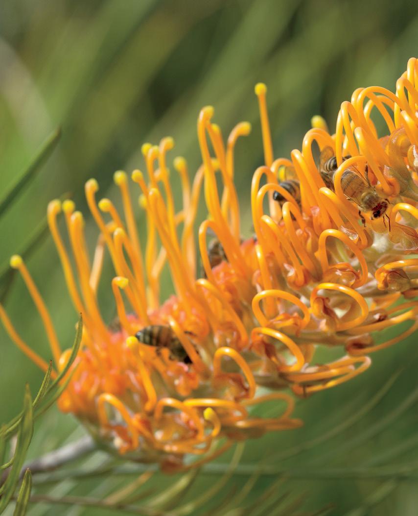 Grevillea, banksia, hakea, and other Australian members of the Proteaceae family make the most of a little. The tough, leathery leaves absorb moisture from coastal fog, taking full advantage of the limited water in their habitat. They’re able to survive—and thrive—in dry areas of Australia, and
