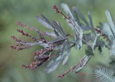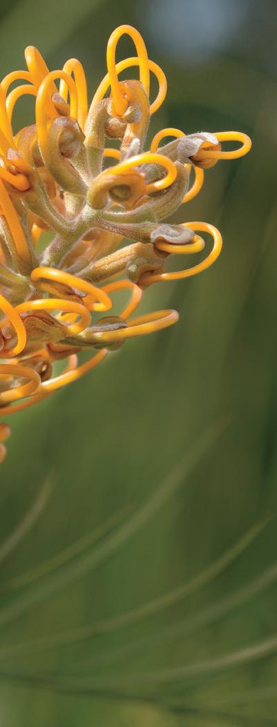 As you journey through Walkabout Australia, watch for the unique cauliflower hakea Hakea corymbosa, with its pillowy cloudshaped clusters of foliage. It produces juvenile shoots called water canes, which have longer leaves than the mature leaves. After about a year, the water canes fill out, forming a new puff to the structure.
