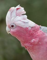 Galahs Eolophus roseicapillus have an eye-catching pink crown and a rose-colored breast, underparts, and underwing coverts. Galahs can make their pink crest feathers stand up like a headdress when they are excited, giving them a particularly distinctive appearance. To tell males from females, you need only look into a galah’s eyes. Males’ eyes have a dark brown iris, while females’ eyes have a pink-to-red iris. Females are also slightly smaller than males.
