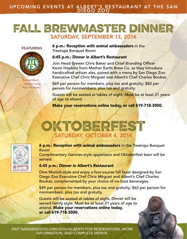 U P C O M I N G E V E N T S AT A L B E R T ’ S R E S TA U R A N T AT T H E S A N DIEGO ZOO