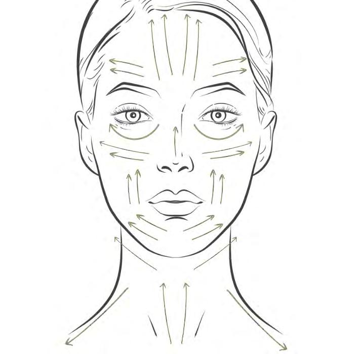 Use the facial roller to you help the skin absorb any remaining serum left on the skin. Facial rolling has many additional benefits from smoothing frown lines to reducing puffiness and we highly recommend you follow the facial roller map on the adjacent page..