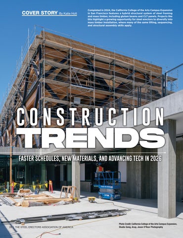 Above: The California College of the Arts Campus Expansion in San Francisco features a hybrid structural system of steel framing and mass timber, which highlights a diversification opportunity for steel erectors.