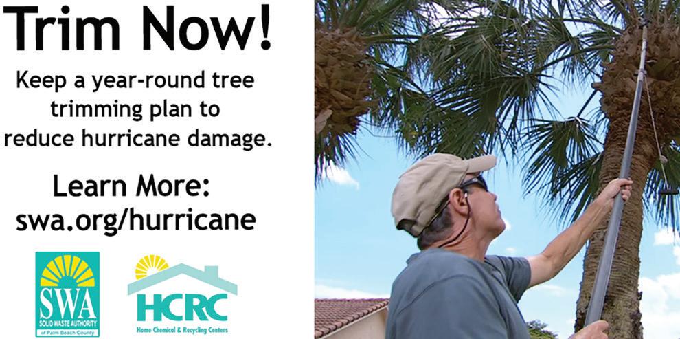 This is also the right time to trim trees and manage yard debris. Once a storm watch is issued, collection isn’t guaranteed. Yard waste pickup is limited to one pile of up to 6 cubic yards weekly. If you’re disposing of expired storm supplies like fuel, propane tanks, or batteries, use the Solid Waste Authority’s Home Chemical and Recycling Centers. A convenient site is the North County Transfer Station at 14185 North Military Trail in Jupiter. Visit swa.org or call (561) 697-2700 or (866) SWA-INFO for more details.