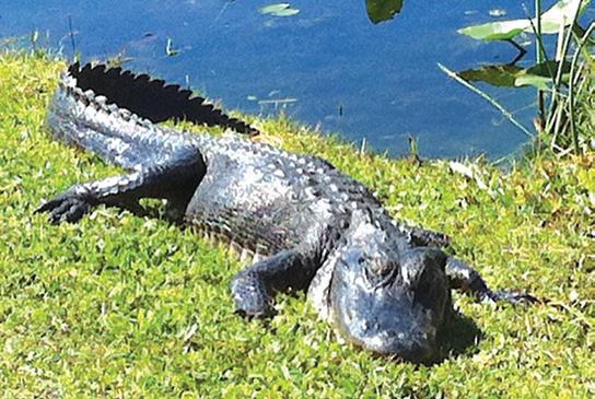 BEWARE OF ALLIGATORS AND SNAKES when retrieving your ball on the banks of the lakes.
