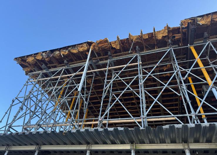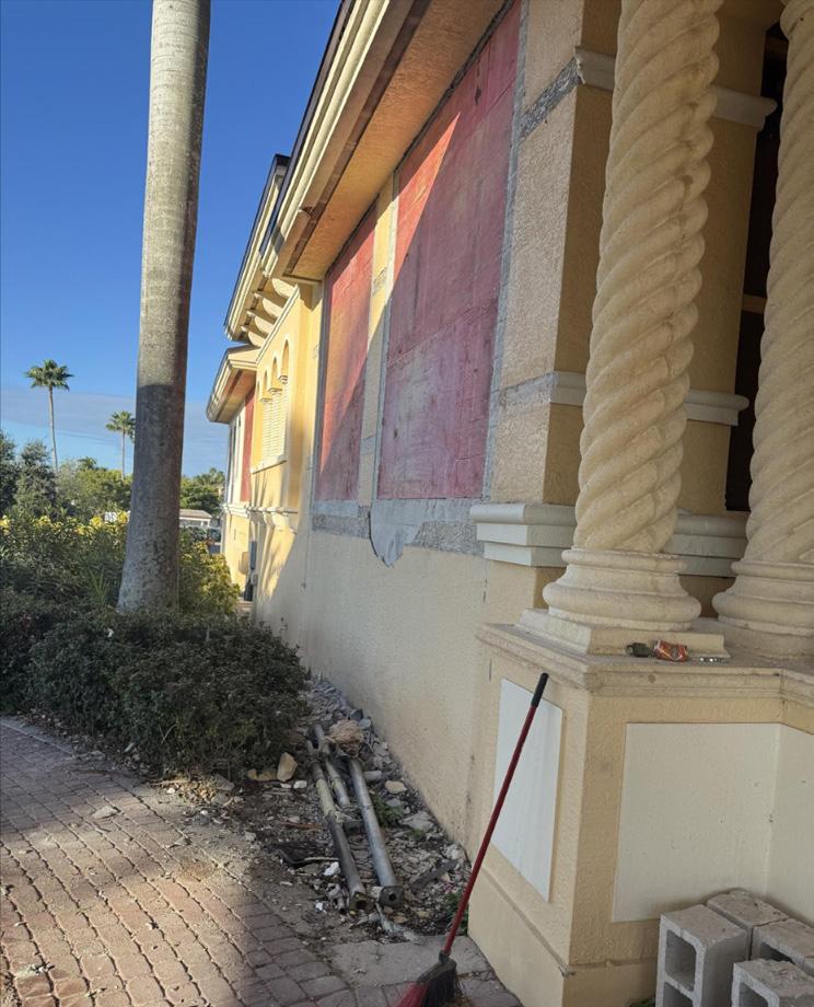 Now … for the elephant in the room or should I say, the big building being held up by little yellow shoring poles.