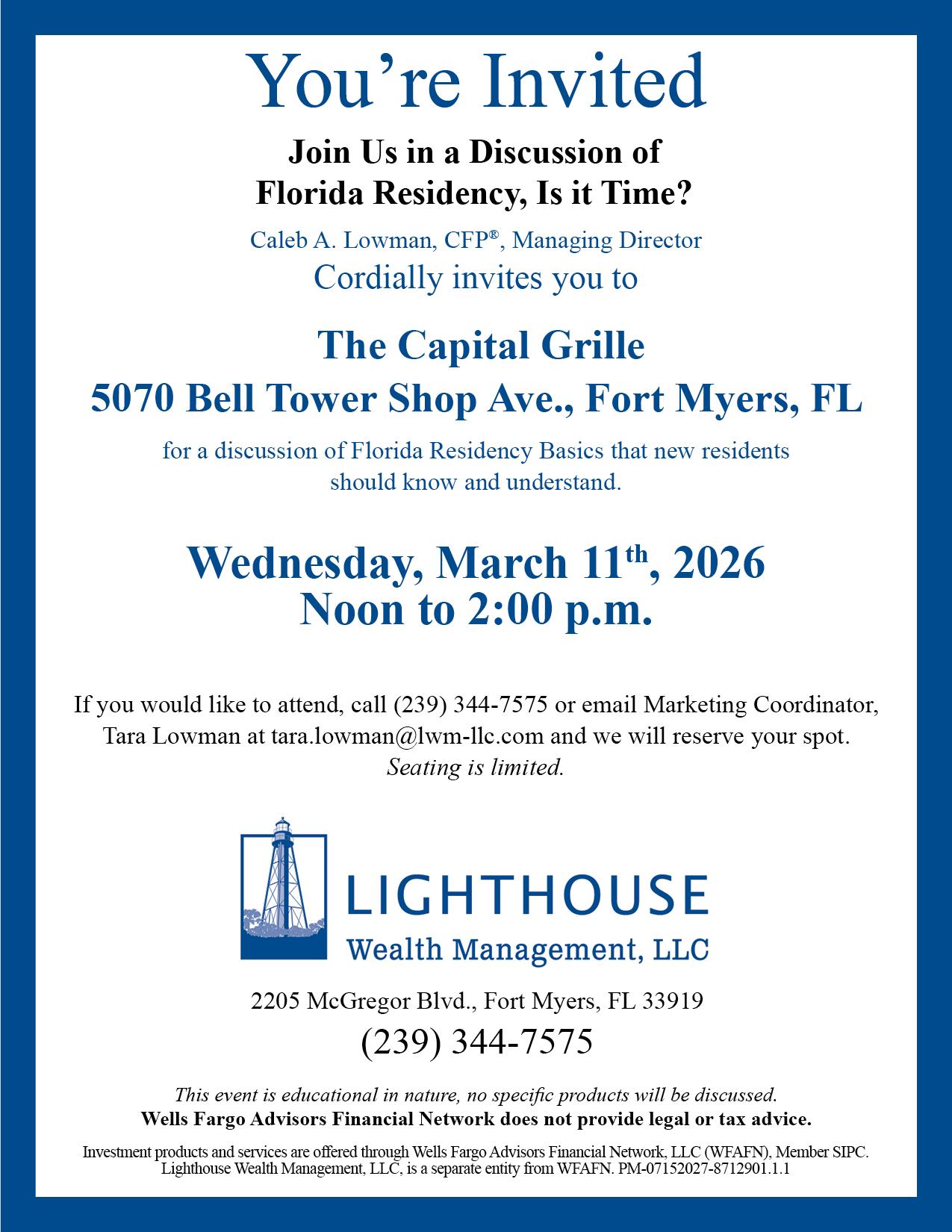will now be routinely held at Suitor Middleton Cox & Associates offices, 15751 San Carlos Blvd #8, Fort Myers, FL 33908. Meeting date and times will continue to be posted on the signs at the north and south entrances.
