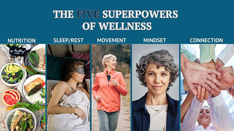 If you lived to 100, what would you want to be able to do? Travel? Play pickleball? Carry groceries without effort? Whatever your vision, your blueprint starts now. By implementing our Five Wellness Superpowers: nutrition, movement, sleep/rest, connection and mindset.