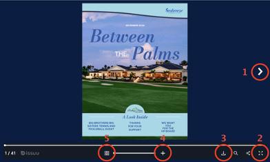 of the PDF page, click the display icon and choose “Two-page view” and “Show cover page.” It will appear just like the on-line magazine version! If you download the issue, you can print any page you like, and also store any current or prior issue on your laptop. It’s easy-peasy!