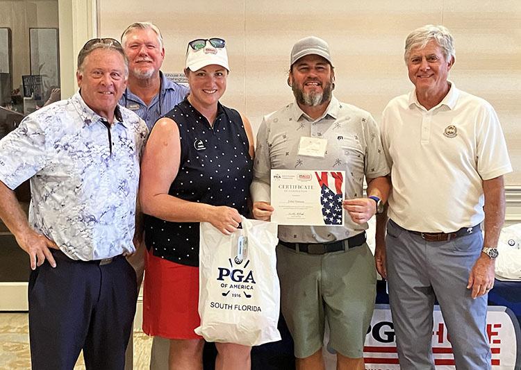 KRISTINE IS PICTURED WITH SOME PGA HOPE INSTRUCTORS AND ONE OF THEIR GRADUATES. SHE’S PASSIONATE ABOUT GIVING BACK TO VETERANS AND SUPPORTING UNDERSERVED COMMUNITIES, INCLUDING MENTORING PATH 2 FREEDOM, GIRLS IN FOSTER CARE, AND USING GOLF AS A FORM OF THERAPY.
