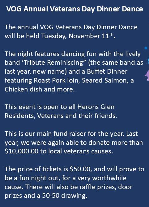 The annual meeting of the Herons Glen HOA will be held on Wednesday, December 10, 2025 at 4:30 p.m. in the Herons Glen Ballroom.