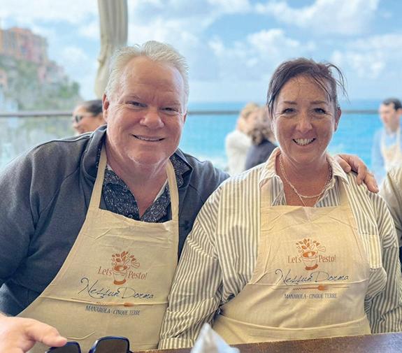 It was just one fantastic trip after another this summer for our Riverside neighbors. In planning their trip to Italy, the Strykers knew they would be hiking the steep hills in the Cinque Terra area but were also interested in finding activities in the region where they could spend their time during the hottest part of the day. That was how they found the Cinque Terre Cooking School (https:// www.cinqueterrecookingschool.com), located high on a mountainside in Monterosso, Italy, and The