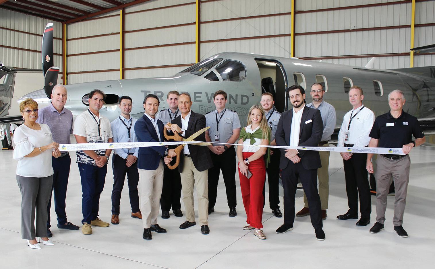 Tradewind Aviation Founders Eric and David Zipkin were joined by their team and the Stuart/Martin County Chamber of Commerce during a ribbon cutting ceremony celebrating newly launched scheduled service from Witham Field in Stuart to the Bahamas. Pictured left to right, front: Chamber Ambassador Margaret Winfield; David Zipkin, co-founder and CCO, Tradewind Aviation; Eric Zipkin co-founder and CEO, Tradewind Aviation; Jen Lozada, vice president of revenue, Tradewind Aviation; Anthony Karpinski Jr., head of Southeast development, Tradewind Aviation; Chamber Ambassador/Trustee Jon Ryan. Back: District 5 Commissioner, Vice Chairman Edward V. Ciampi; Tradewind Aviation pilots/crew Enzo Aponte Viera, Bruno Villasenor, Ethan Browne, Brendan Wixson, Logan Murphy; Ed Adduci, director of maintenance, Tradewind.