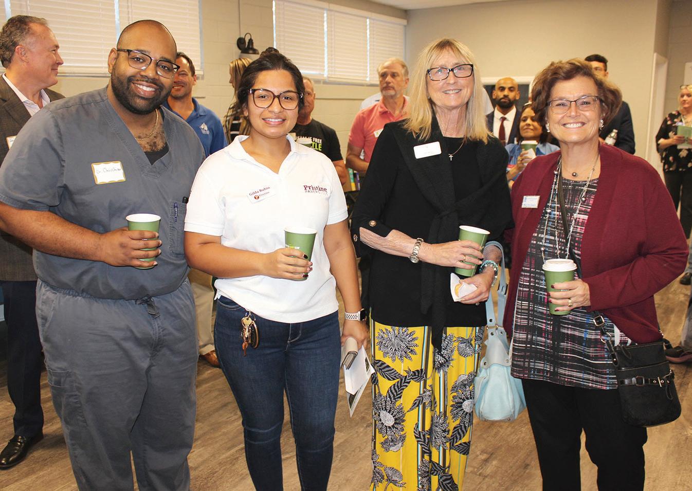 Enjoying coffee and conversation at the Stuart/Martin County Chamber’s Jan. 13 Business B4 Breakfast at 10th Street Community Center were (left to right) Dr. Ellis Christian, Anley Cardiovascular; Gilda Rubio, Pristine Pavers; Lisa Teetor, Nightingale Private Care; and Mary Ann Searle, Soroptimist International of Stuart.