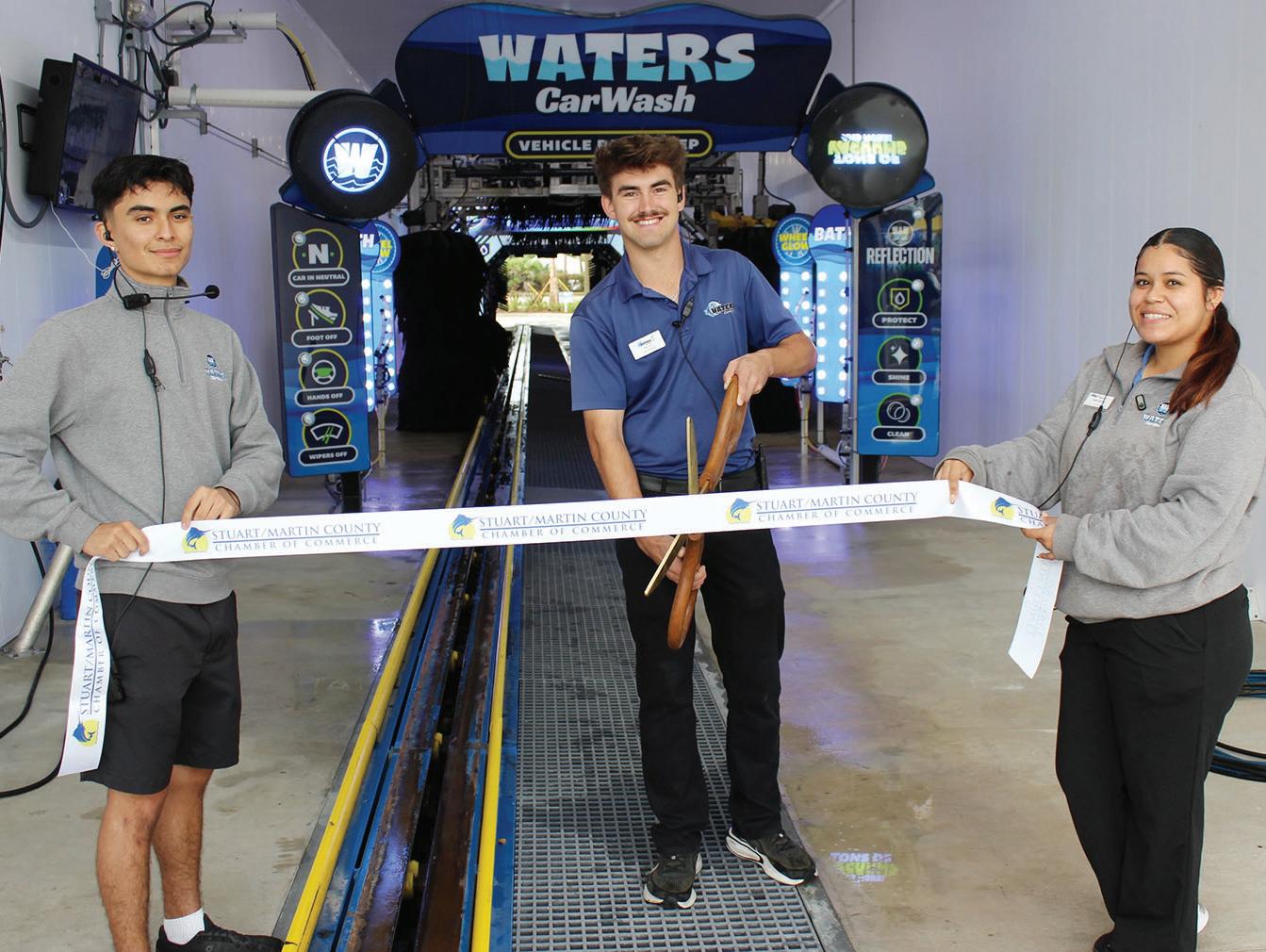On Jan. 15, Samuel Sharkey, managing partner of Waters Car Wash, along with his associates Adrian Pardo and Maria Castro, cut the Stuart/Martin County Chamber ribbon on his new location at 5601 S.E. Federal Highway, Stuart, just south of Salerno Road.
