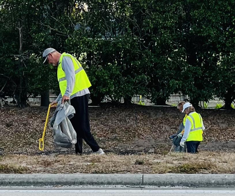 dropped at the pick-up spot, a report of the day’s haul, number and names of volunteers, and number of hours worked is submitted electronically to the County. This is also the time to order additional supplies if needed. The program supplies trash pinchers, bags, and vests.