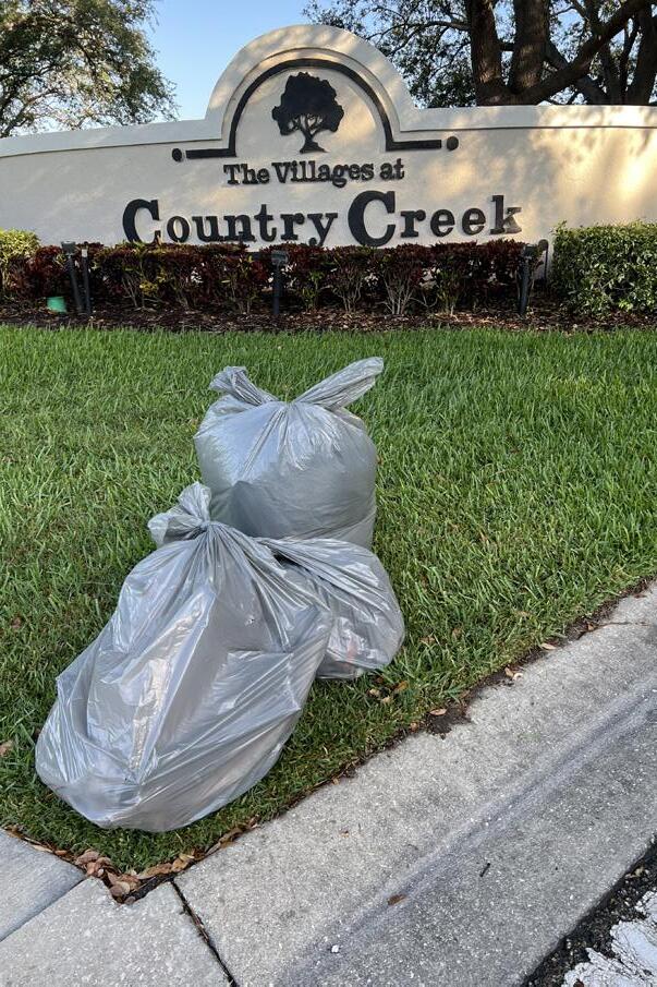 Lee County suggests going out once each month to pick up trash. The VCC crew can generally be seen working the first Saturday of the month. Six to eight volunteers meet at 7 a.m. to distribute supplies and plan our attack. We head out in groups of two and “sweep” the sides and median of the road. It’s important to get out early to beat the heat and the traffic. Generally, it takes one-and-one-half hours to walk the VCC section of Corkscrew Road. After the trash is collected and