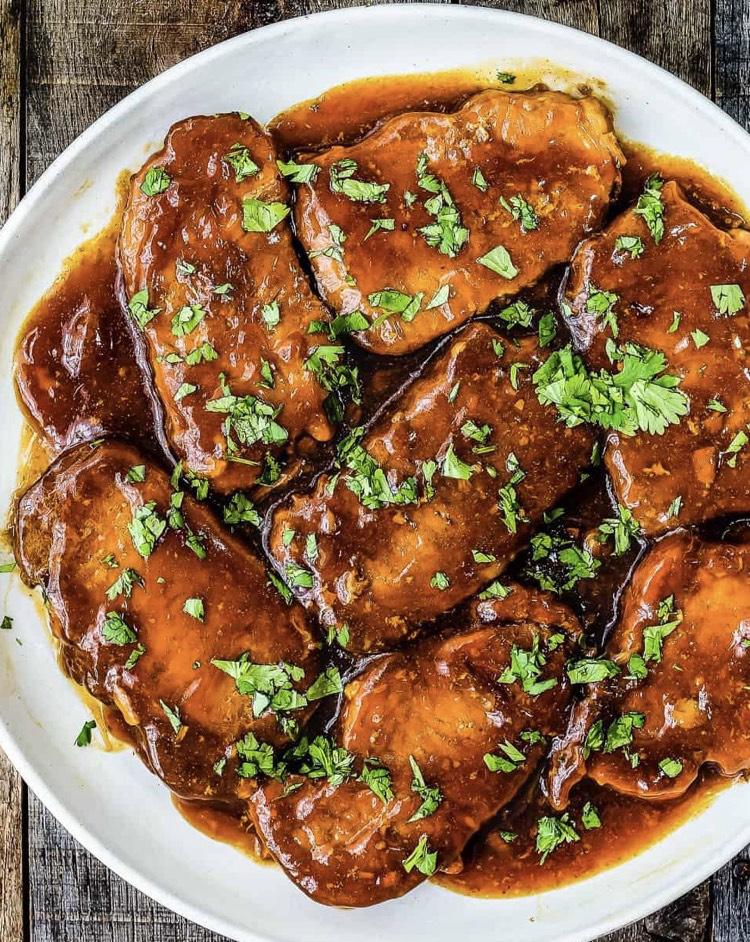 PORK CHOPS IN WINE AND MUSHROOM SAUCE