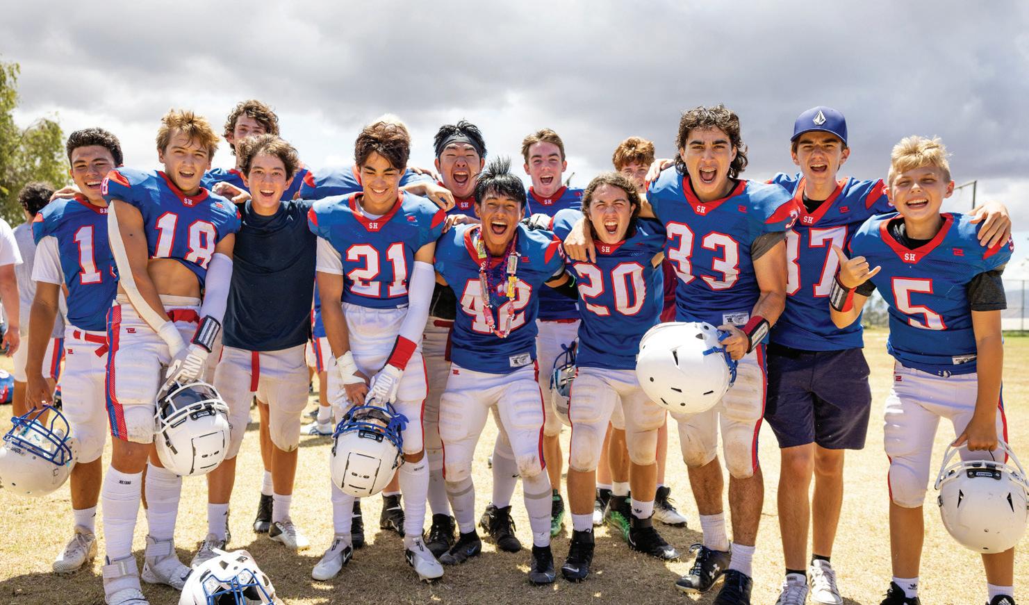 After going undefeated and winning three-straight MIL crowns from 2012-2014, Seabury Hall’s 8-man football team hadn’t played a down since 2018. There was an informal season in 2021 that featured one intrasquad scrimmage, but the o cial return to MIL action was that September morning against Hana High School — a game the Spartans ultimately won by a score of 54-14. “The energy that day was really unbelievable,” said head coach, Nathan St. Cyr. “The alumni energy, the amazing turnout — it created that special feeling that football has the opportunity to create on a campus.”