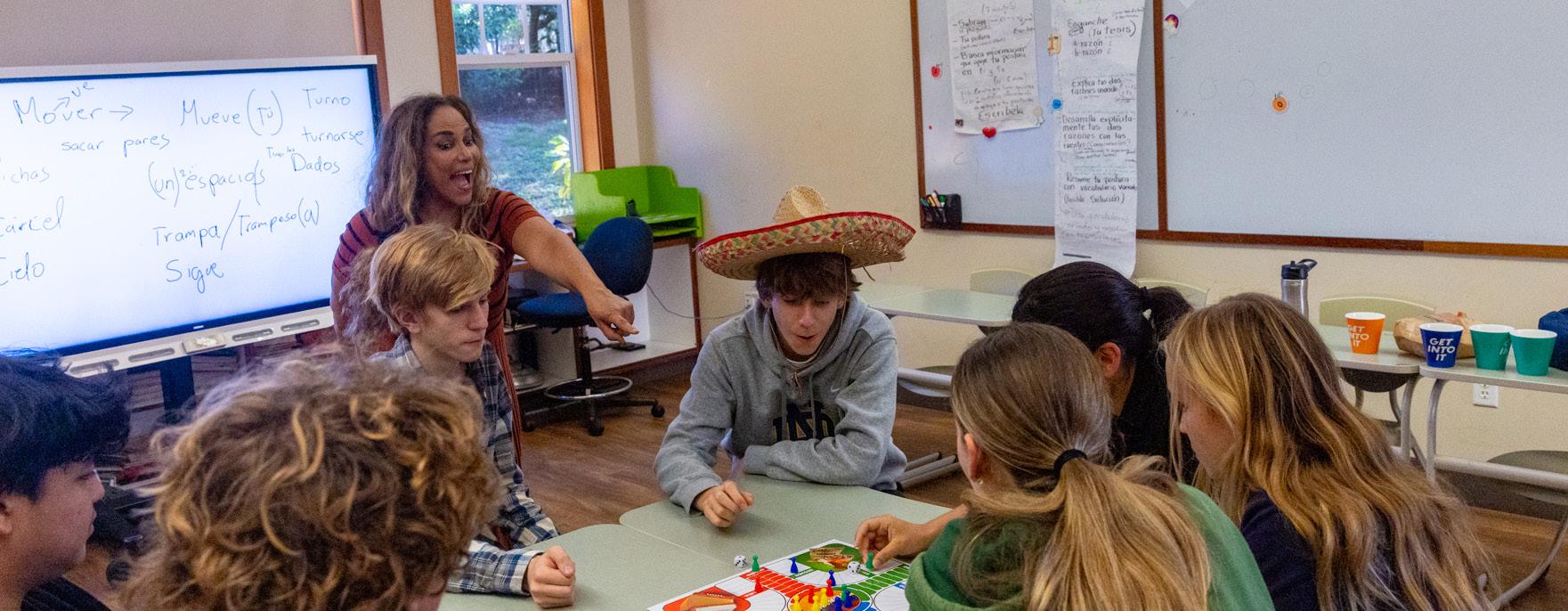 Introduction to Spanish 7 ignites student enthusiasm for language learning through an immersive, interactive environment. Students develop foundational communication skills while building confidence in speaking and listening. The course fosters global awareness and intercultural respect while establishing a strong structural foundation for continued study in Upper School.