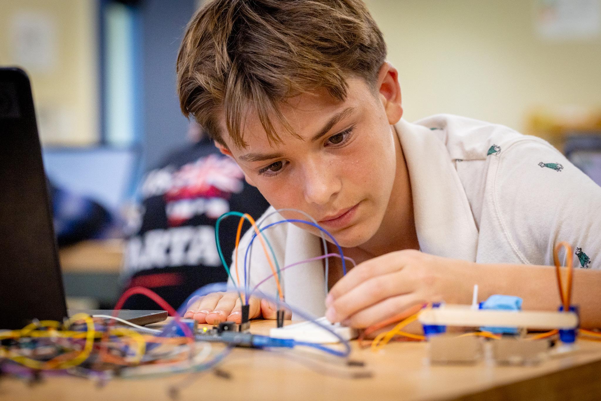 MS Electric Pro introduces students to electronics, circuits, and rapid prototyping. Students learn how sensors and motors bring physical computing projects to life. The course emphasizes iterative design and hands-on engineering challenges.