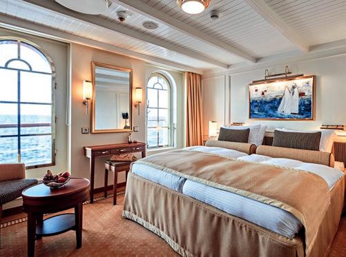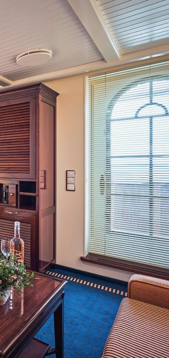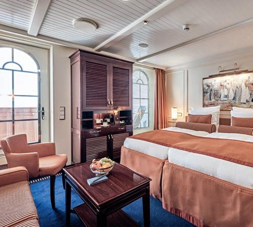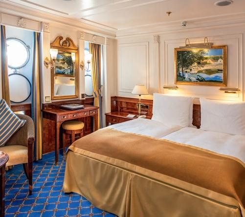 • 69 Außenkabinen (davon 22 Junior-Suiten und 3 Suiten jeweils mit Balkon sowie 7 De-Luxe-LidoAußenkabinen (Kat. C) mit Panoramafenstern/ bzw. Panoramatür (408) zum Öffnen)