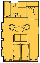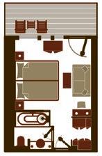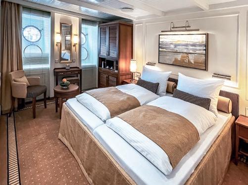 • Doppelbett: 180 x 200 cm; auf Wunsch in Einzelbetten teilbar in allen Backbord gelegenen Kabinen (außer 212 und 214)