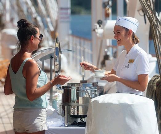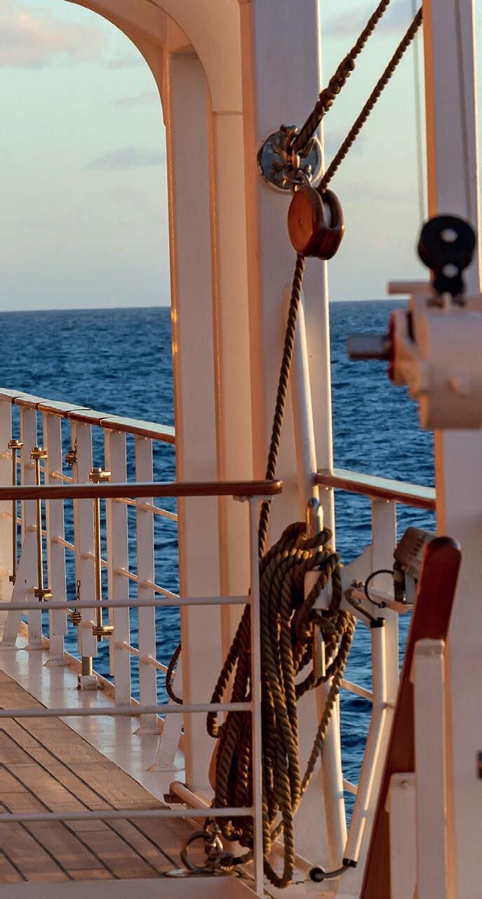 Auf einem echten Großsegler stehen selbstverständlich das Segeln und die Segelmanöver im Mittelpunkt. Der 1. Offizier gibt Ihnen beim ersten Segelsetzen gern tiefere Einblicke in diese faszinierende Welt. Auf allen Reisen sind Experten zu speziellen Fachthemen an Bord. Auch Künstler, z.B. junge Talente aus dem Steinway Prizewinner Concerts Network, ergänzen auf einzelnen Reisen das Bordprogramm. In der Lidobar unterhält ein Pianist oder DJ zur abendlichen Cocktailstunde oder zum „After Dinner“ Drink.