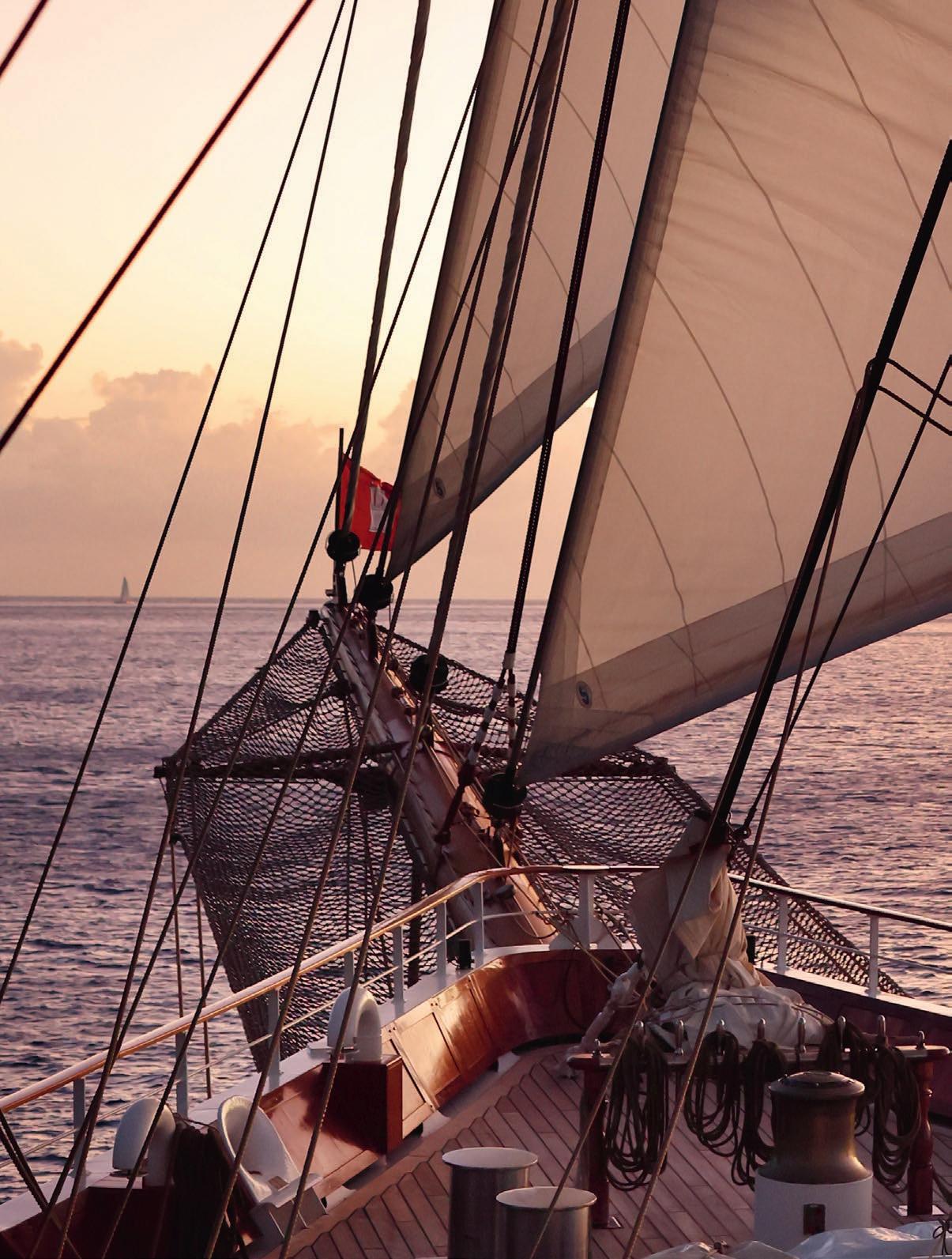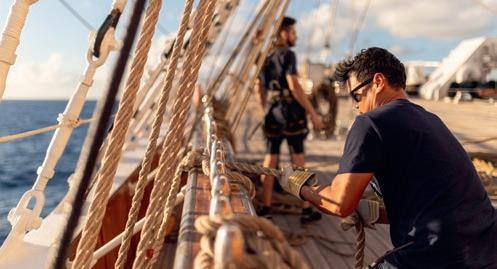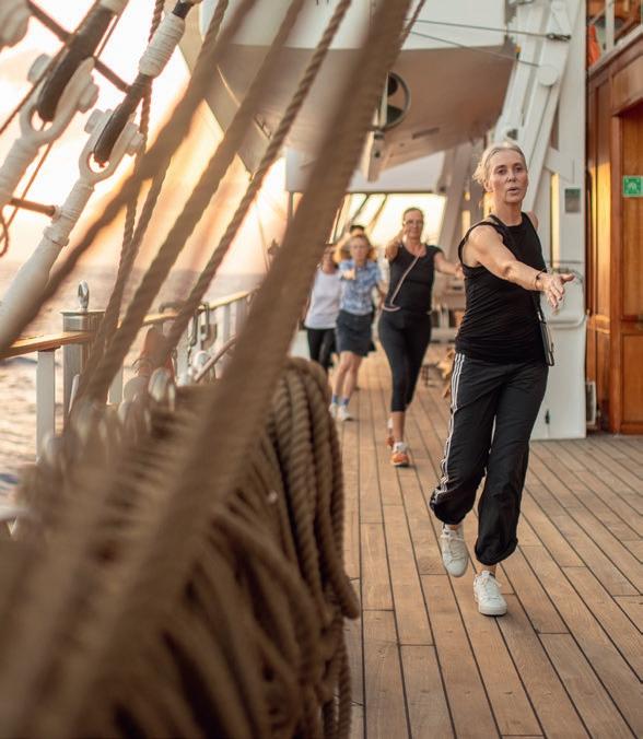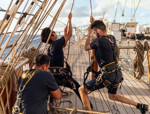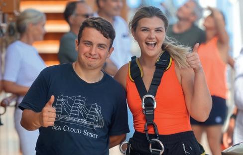 Wer mag, kann auf den SEA CLOUDs auch selbst aktiv werden, z.B. beim Durchholen der Leinen, beim Brassen der Rahen und beim Segelsetzen. Seit neuestem ist es sogar möglich, mit der Crew in die Wanten zu steigen. Sicher begleitet und mit modernsten Sicherungssystemen ausgestattet, können Sie bis zur ersten Plattform in etwa 14 Metern Höhe aufsteigen. Mit einem kurzen FitnessCheck an Bord vorab sorgen wir dafür, dass Sie sich rundum wohl und sicher fühlen, bevor Sie aufsteigen. Unsere erfahrenen Deckhands sind speziell geschult und begleiten Sie bei jedem Schritt.