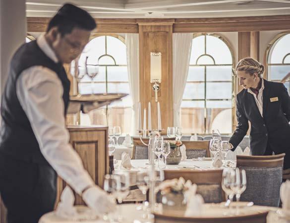 Die überschaubare Gästezahl macht es möglich: An Bord genießen Sie alle Mahlzeiten gemeinsam in einer Sitzung. Eine feste Platzordnung gibt es nicht. Unser Maître d’ hilft Ihnen gern, Ihren Platz im Restaurant zu finden. Der Dresscode für den Abend?