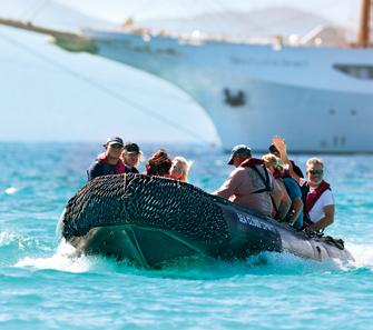 Wo die großen Kreuzfahrer wenden müssen, segeln die SEA CLOUDs mitten hinein ins Karibikgefühl. Und werfen cool wie die Einheimischen für den nächsten Ausflug einfach den Außenborder des Zodiacs an.