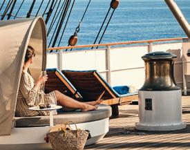 Kurz vor dem Mittag noch einmal vom Schiff ins Wasser hüpfen, ein Badeausflug zum kleinen Sandstrand oder ein schneller Abstecher zum Beachclub –weil die SEA CLOUDs näher dran sind an Land und Leuten, bleibt viel Raum für spontane Ideen. Das Meer lädt ein, sich einfach fallenzulassen: heiter, leicht und unbeschwert.