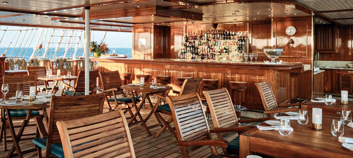 On our sailing yachts, you will eat in one seating with no set tables. Mealtimes are printed on the daily onboard program. In addition, the SEA CLOUD SPIRIT provides a bistro on the lido deck.