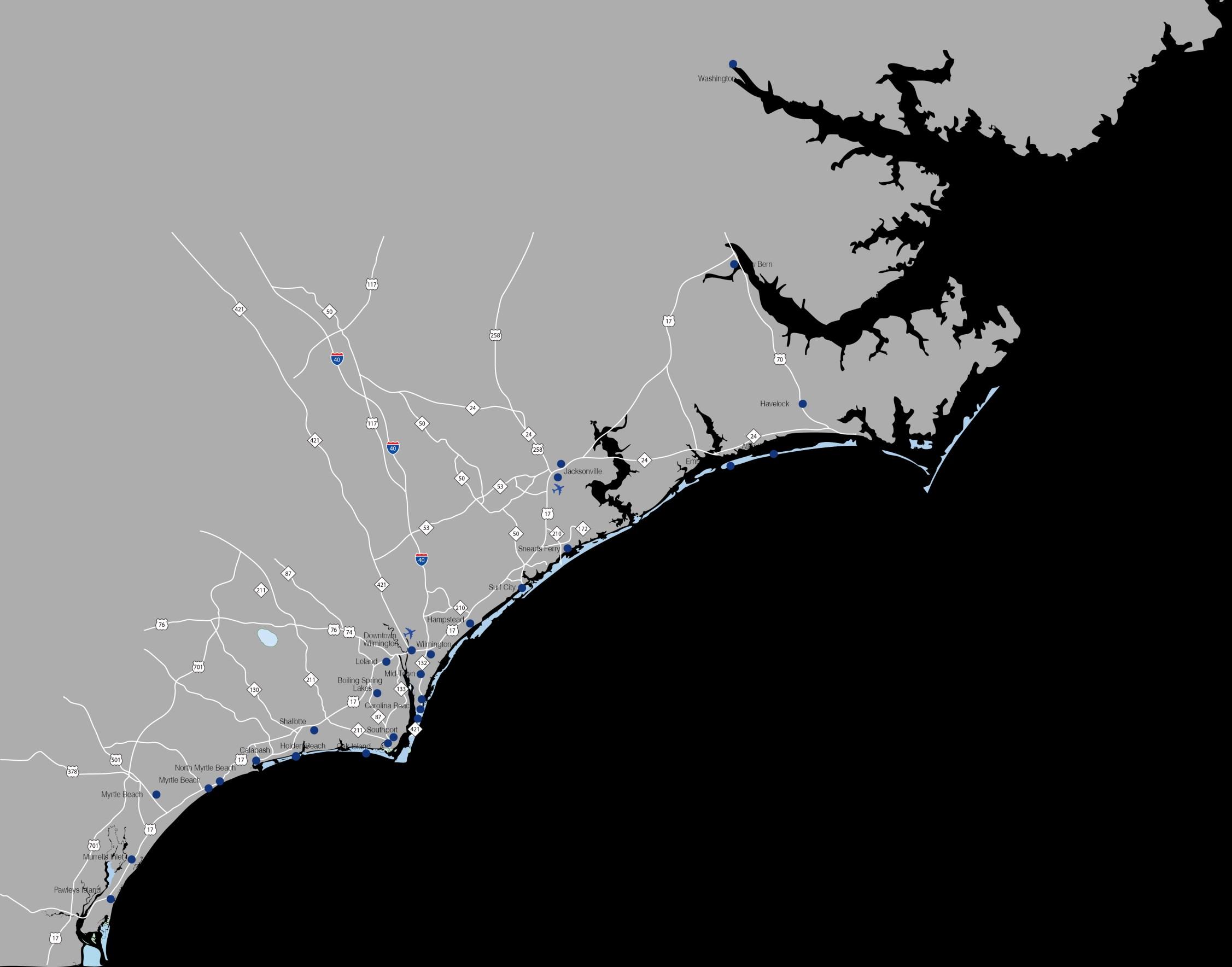 15 Leland 481 Olde Waterford Way, Ste 104 Leland, NC 28451 Sneads Ferry 1350 NC Highway 210 Sneads Ferry, NC 28460 8 Surf City 326 North New River Drive Surf City, NC 28445 9 Hampstead 14889 US Highway 17, Ste B Hampstead, NC 28443 10 Jacksonville - Henderson 1012 Henderson Drive Jacksonville, NC 28540 6 7 Jacksonville 2355 Western Blvd, Suite 300 Jacksonville, NC 28546 14 Carolina Beach 1001 North Lake Park Blvd Carolina Beach, NC 28428 16 Boiling Spring Lakes 3481 George II Hwy, Unit #5 Southport, NC 28461 22 South Brunswick 5826 Beach Drive SW Shallotte, NC 28470 23 Calabash 10020 Beach Drive SW Calabash, NC 28457 Midtown 2516 Independence Blvd Wilmington, NC 28412 13 Holden Beach 3247 Holden Beach Road SW Holden Beach, NC 28462 21 Havelock 102 Roosevelt Blvd Havelock, NC 28532 3 Atlantic Beach 515 Atlantic Beach Causeway Atlantic Beach, NC 28512 4 5 Emerald Isle 8002-D Emerald Drive Emerald Isle, NC 28594 Autumn Hall 110 Dungannon Blvd, Ste 100 Wilmington, NC 28403 11 12 Wilmington Downtown 200 N. Front Street, A-1 Wilmington, NC 28401 18 Southport Downtown 108 S. Davis Street Southport, NC 28461 19 Oak Island 6101 E. Oak Island Drive Oak Island, NC 28465 Southport 4911 Long Beach Road Southport, NC 28461 17 2 New Bern 115 Middle Street New Bern, NC 28560 20 Southport St. James 4330 Southport-Supply Rd. Southport, NC 28461 1 Washington 239 W. Main Street Washington, NC 27889 24 Indian Trail 124 Unionville Indian Trail Rd Indian Trail, NC 28079