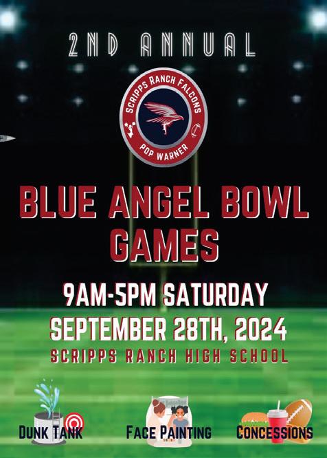 Scripps Ranch Pop Warner will host a handful of home football games – along with performances by the group’s cheer teams –throughout the day starting at 9 a.m. on the Scripps Ranch High School football field. Special activities will begin during an hourlong break between games at 2 p.m., one hour before the Blue Angels perform.