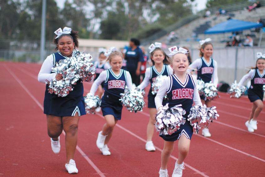 It seems activities halt for several minutes each year in September as San Diegans gaze skyward while the U.S. Navy Blue Angels flight demonstration team performs thunderous, breathtak ing precision maneuvers over the city, high lighting the annual MCAS Miramar Air Show. The aerial acrobatics and noise can be a signif icant distraction, but the Scripps Ranch Pop Warner Football and Cheer Association takes advantage of the event to hold a fun-filled fund raiser while the nearby air show is underway.