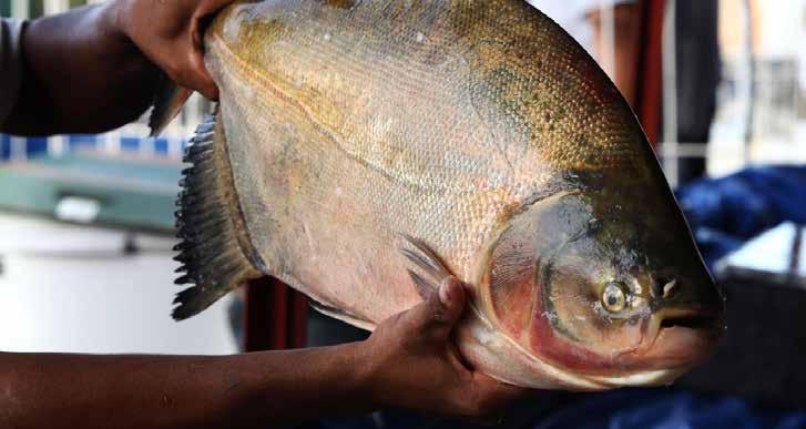 líquida por pescador e as principais espécies capturadas) na Bacia Tocantins-Araguaia coletados durante a pandemia. Já para a aquicultura, destacamos ações para o enriquecimento do núcleo de conservação in situ dos peixes caranha (ou pirapitinga), tambaqui e pirarucu coletados em pisciculturas da região Norte e/ou na natureza para conservação de material genético de uso imediato ou com potencial de uso futuro no melhoramento genético.