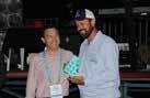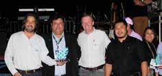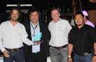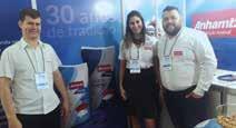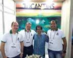 A Suzuki Marine do Brasil investiu na divulgação da linha de motor de popa. O destaque ficou com o motor de DF20 A 4T com injeção eletrônica sem bateria, sistema de controle de consumo e peso de 44 kg. “Em comparação com os outros, obteve uma redução em 50% do combustível”, informou o gerente comercial, Mauricy Bizatto (centro), ao lado de Aloísio Freitas e Marcelo Biral.