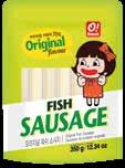 O surimi da polaca rende diversos produtos, como esta salsicha comercializada pela Hee Chang em dus versões: com e sem pimenta, para atrair crianças e adul tos. A empresa sul-coreana tem mais de 10 itens do gênero na linha.