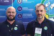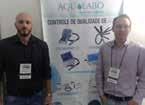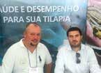 Os óleos essenciais e ácidos orgânicos da linha da Alliplus estiveram presentes à feira. Os produtos ajudam a combater vírus, parasitas, bactérias e/ou patógenos fúngicos e possuem ação preventiva contra enfermidades infecciosas. “A ideia é substituir os antibióticos por produtos naturais combatendo enfermidades que estão aparecendo na aquicultura e melhorando a etapa de crescimento”, informou o representante da empresa Rômulo Fiorucci, ao lado de Paulo Ceccarelli.