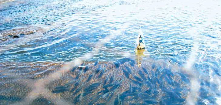 O alimentador automático da Cadoma foi o destaque do estande. A máquina fraciona o trato do peixe ao longo do dia, faz reajuste conforme a temperatura da água e mantém um registro do crescimento dos peixes para ajustar a quantidade de ração. André Augusto, diretorexecutivo, explica que sensores fazem em tempo real o cruzamento da curva de conversão com a temperatura e a progressão por crescimento é automaticamente programada por um aplicativo que ainda fornece informações e métricas para o dia-a-dia.