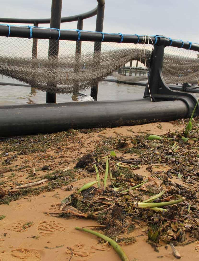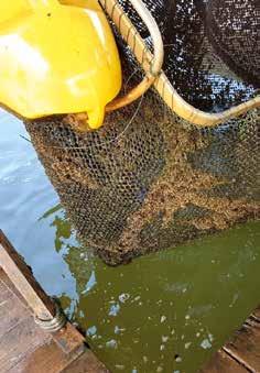 a rede tilápia Sauter. O equipamento foi desenvolvido especialmente para a espécie, encabeçada e confeccionada com manga, antisaco e saco.