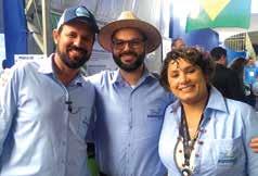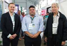 Pela primeira vez na feira, a Vaccinar fechou negócios na feira com fábricas de ração que não possuem máquinas de premix e preferem comprar de terceiros. Frederico Rates (à dir., ao lado de Bruno Vieira), gerente comercial nacional da linha aqua e pets, colocou como pontos a favor a experiência de 39 anos da empresa tanto em premixes de linha quanto em produtos customizados para atender cada cliente e a fase de cada animal.