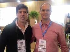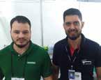 Focada em projetos, fabricação e montagem de estufas agrícolas e seus insumos, a Tropical Estufas ofereceu ao público a estufa “Trop Shrimp”. “Ela tem uma estrutura bem robusta, com largura de até 20 metros com a qual o produtor consegue aumentar sua produtividade em área útil interna na propriedade”, advertiu o executivo Gustavo Rios (à dir.). A companhia dividiu o estande com a parceira Nortene, representada por Diego Leite, que é especialista em insumos plásticos, telas e tanques-rede.
