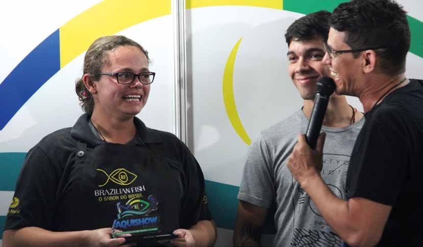 A Snack Fish, de Gabriela Lourenço, resolveu apostar na construção de um frigorífico de lambari para o mercado de petisco e realizou uma apresentação especial das máquinas na feira. O objetivo inicial é fazer 250 kg de petiscos de lambari por dia com as máquinas fornecidas por Joaquim Ferreira, da Branco Máquinas. “Primeiro a máquina descama o peixe, que depois passa pela evisceradora, é lavado e depois congelado em bandejas de 250g”, explicou Gabriela.