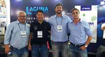 Parte do grupo Neovia, a Socil atua no Brasil com soluções nutricionais em rações e o lançamento mostrado na feira foi a ração MeM Prime, que é produzida com processos de microextrusão a frio. “É um novo conceito de extrusão onde conseguimos ter micropartículas com expansão do amido. E o processo de fusão a frio permite que os nutrientes não percam seu valor biológico”, disse o gerente comercial, Daniel Machio, (à dir. junto a Eduardo Urbinati, Flávio Silva e Thiago Ushizima.