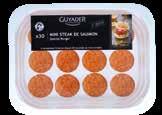 sal grosso, açúcar e endro. A Guyader usa o método para fabricar estes minihambúrgueres de salmão, já temperados com sal e pimenta, que podem ser aquecidos no microondas em 30 segundos para sanduíches mais refinados.